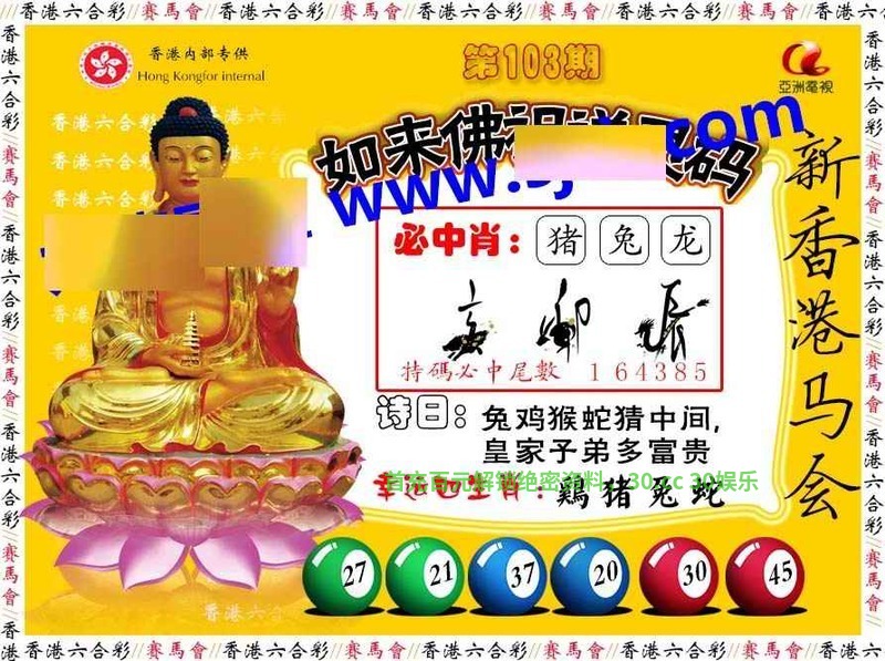 103期:绝杀③肖【虎狗马】开:牛41中